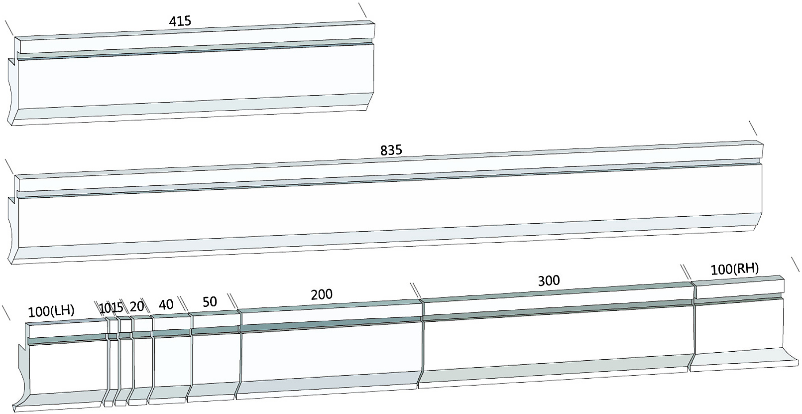 Три типа стандартной сегментации: L835 мм, S415 мм и 835 мм.