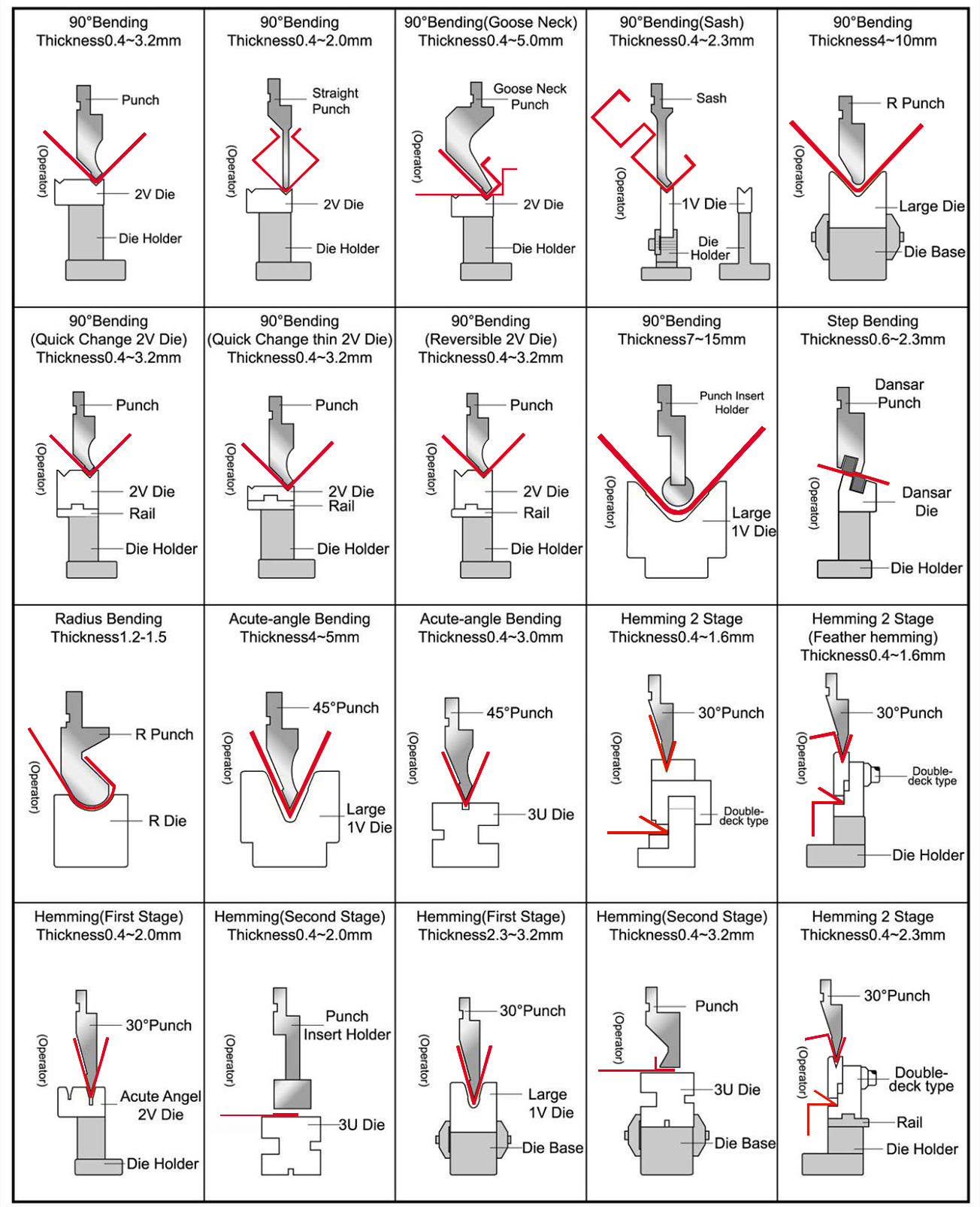 Компания Jaminnar располагает двумя собственными научно-исследовательскими отделами, специализирующимися на разработке технологически передовых решений и ориентированными на инновации. Благодаря поддержке нашего технического отдела мы можем проектировать и поставлять специальные пуансоны и матрицы, а также подбирать оптимальные решения для ваших проектов по гибке. Инструменты, которые мы поставляем для листогибочных прессов, эффективны и долговечны, благодаря использованию передовых технологий и современного оборудования. Мы осуществляем строгий контроль качества и гарантируем наличие высококвалифицированных сотрудников. Наши пресс-формы проходят тщательное тестирование для обеспечения стабильности и долговечности. Надежность и конкурентоспособные цены — еще две отличительные особенности наших гибочных инструментов.